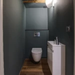 L’objectif ? Préserver l’âme du bâti ancien tout en adaptant les volumes à un mode de vie contemporain. Nous avons misé sur une restructuration fluide des espaces : une pièce de vie chaleureuse baignée de lumière, une cuisine ouverte avec îlot central, un salon intimiste, une suite parentale fonctionnelle avec dressing et bureau intégrés, ainsi qu’un coin TV aménagé en mezzanine.
